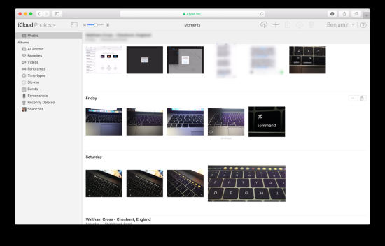 Bereits in den vergangenen Monaten hat sich Apple bemüht das Look-and-Feel der Webanwendungen auf iCloud.com, möglichst nah an das der nativen Anwendungen auf dem Mac anzugleichen. Wie die Kollegen von MacMagazine (via 9to5Mac) entdeckt haben, ist dabei offenbar als nächstes die Web-Version der Fotos-App an der Reihe. Aktuell noch in relativ rudimentärem Zustand verfügt diese auf beta.icloud.com inzwischen bereits über eine Seitenleiste und eine Thumbnail-Vorschau durch die man sich mit Wisch- und Scrollbewegungen arbeiten kann, ebenso wie man es aus der Fotos-App am Mac kennt. Ebenfalls neu hat sich hier eine neue Leiste am oberen Bildschirmrand hinzugesellt, die über Buttons zum Up- und Download von Bildern verfügt. In der ein- und ausblendbaren Seitenleiste hingegen findet man wie gewohnt die verschiedenen Alben der Foto-Mediathek.