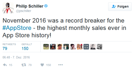 November 2016 der bislang verkaufsstärkste Monat der AppStore-Geschichte