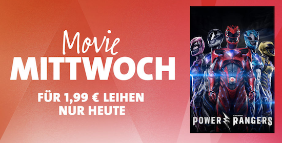 Auch heute hat Apple wieder den sogenannten "Movie Mittwoch" ausgerufen. Dabei wird jeden Mittwoch ein ausgewählter Film aus dem iTunes-Sortiment für 24 Stunden zum Sonderpreis von nur € 1,99 in HD-Qualität zum Leihen angeboten. Heute erhält man dabei den Superhelden-Actionfilm Power Rangers. Nachdem man den Leih-Film geladen hat, kann er innerhalb von 30 Tagen angeschauen werden. Wie immer bei geliehenen Filmen aus dem iTunes Store gilt: Hat man hiermit einmal begonnen, muss man ihn innerhalb von 48 Stunden beenden.