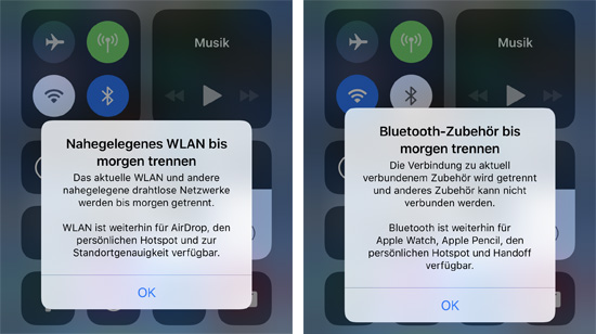 iOS 11.2: Neue Popups und Button-Darstellung für WLAN und Bluetooth im Kontrollzentrum