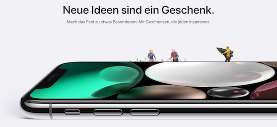 Wie jedes Jahr in der Vorweihnachtszeit hat Apple auch nun wieder seine "Geschenkideen für die Feiertage" im Apple Online Store veröffentlicht. Dabei stellt man auf einer extra geschalteten Webseite Geschenkideen aus dem eigenen Sortiment für Freunde und Familie vor. In diesem Jahr hat sich Apple dabei einen kleinen Gag erlaubt und die Produkte mit kleinen Menschenfiguren in Feiertags-Szenen versehen. Ganz oben und damit am prominentesten präsentiert man dabei das iPhone X. Ebenfalls findet man in dem auf Englisch als "Holiday Gift Guide" bezeichneten Sortiment die Apple Watch Series 3, das iPad Pro, das MacBook Pro oder auch das 4K Apple TV, sowie diverses Zubehör für die Geräte.