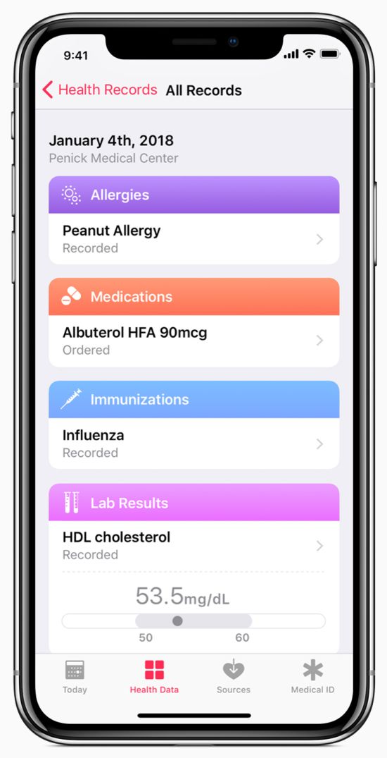 Die neue "Health Records" Funktion innerhalb der Health-App bietet Nutzern die Möglichkeit einer virtuellen Gesundheitsakte, die anschließend auch mit den Daten aus Krankenhäusern und Kliniken gefüllt werden kann. Somit können Daten aus den verschiedensten Quellen an einem Ort zusammenfließen. Dank individueller Benachrichtigungen können sich die Nutzer auch informieren lassen, sobald neue Laborergebnisse, etc vorliegen. Diese Funktion wird aus Datenschutzgründen mit einem Passwort geschützt und die Daten verschlüsselt gespeichert.