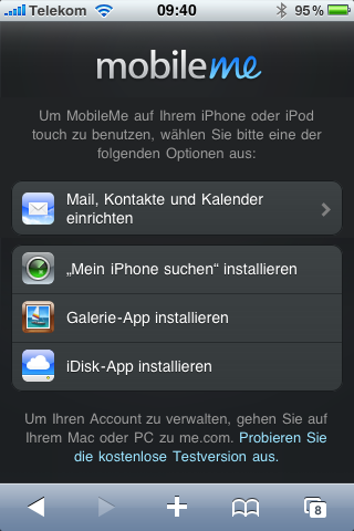 Auch die prominente "Mein iPhone suchen"-Funktion wurde optisch überarbeitet und funktioniert nun auch (rechtzeitig vor dem offiziellen Start) endlich mit iOS 4. MacRumors berichtete bereits gestern von einer iPhone-App für "Mein iPhone suchen" und scheint damit Recht zu behalten. Geht man mit dem iPhone auf me.com, findet man dort einen Button namens "Mein iPhone suchen installieren". Derzeit reagiert der AppStore allerdings noch nicht auf die Anfrage. Auf diesem Wege kann man sich zukünftig also den Weg über das Webinterface sparen, vorausgesetzt, man besitzt noch ein weiteres iDevice, mit dem man die App nutzen kann, um ein anderes iDevice zu finden...