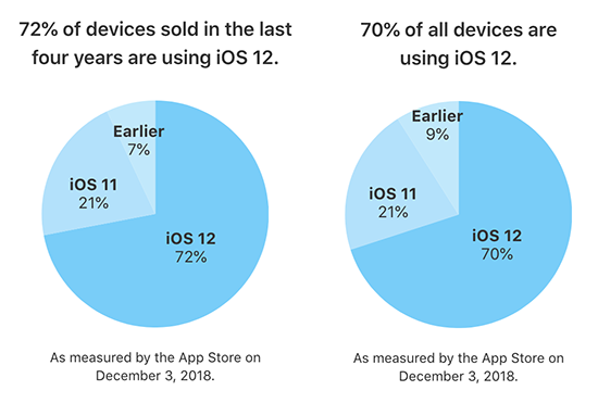 iOS 12 läuft inzwischen auf 70% der unterstützten Geräte