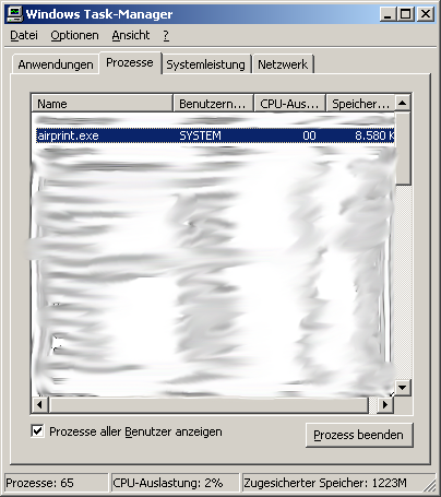 UPDATE: Wer sich schon gefagt hat, wofür unter Windows unbedingt iTunes 10.1 benötigt wird, um AirPrint nutzen zu können, sollte mal einen Blick in den Task-Manager werfen. Hier taucht nämlich plötzlich der Prozess "airprint.exe" auf, der offenbar für das Ansteuern des freigegebenen Druckers unter Windows verantwortlich ist und anscheinend zusammen mit iTunes 10.1 auf das System gelangt. Das Drucken funktioniert nach der Installation auch auf einem über Windows freigegebenen Drucker tadellos.
