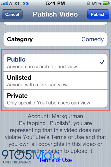 Und hier noch die oben versprochenen Screenshots der Kollegen von 9to5Mac zu den GameCenter-Bannern und den neuen YouTube-Optionen: