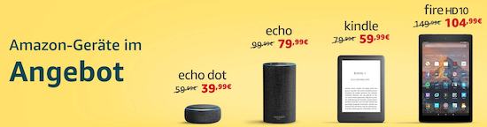 Falls aktuell jemand mit dem Kauf von Amazon-Hardware liebäugelt, wäre momentan ein guter Zeipunkt hierfür. So hat der Online-Händler derzeit mal wieder verschiedene seiner Produkte im Rahmen einer Rabattaktion mit durchaus brauchbaren Nachlässen versehen, die zum Einkaufen animieren wollen. Besonders interessant ist dabei vor allem das erst vor wenigen Wochen vorgestellte neue Modell des Amazon Kindle (€ 59,99 statt € 79,99). Die günstigste Variante von Amazons E-Book Readern ist seit dem Update mit einer Hintergrundbeleuchtung ausgestattet, die auch bei den beiden teureren Modellen Kindle Paperwhite und Kindle Oasis zum einsatz kommt. Einziger Unterschied: Es kommen weniger LEDs als bei den beiden höherwertigen Geräten zum Einsatz. Neben dem Kindle kann man derzeit auch die folgenden Produkte günstig bei Amazon erwerben: