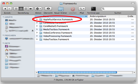 Öffnet man das Programm-Bundle, findet man hier auch das zugehörige Framework.