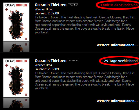 Dieser Vorgang kann natürlich beliebig oft während der 30 Tage Ausleihdauer wiederholt werden. Der einzige Nachteil dabei ist, dass die Kopie natürlich noch einmal 1-2 GB Speicherplatz zusätzlich bedeutet. Bei heutigen Festplattengrößen sollte dies jedoch kein allzu großes Problem darstellen.