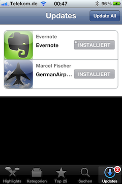Und schließlich noch eine neue, offensichtlich an den Mac AppStore angelehnte Ansicht bei AppStore-Updates: