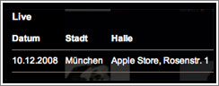 kündigt nämlich auf seiner Webseite (Bereiuch Termine) einen Gig am 10. Dezember im Apple