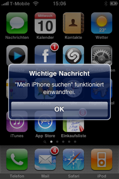 Apples iPhone Software Chef Scott Forstall hatte es auf der Keynote am vergangenen Montag bereits angekündigt. Über die Kombination von iPhone OS 3.0 und MobileMe wird es in Zukunft möglich sein, sein iPhone orten zu lassen und direkt eine Nachricht auf das Gerät zu schicken, um den Finder aufzufordern, das Gerät zurück zu geben. Seit vergangener Nacht können nun Entwickler, die bereits mit dem GM-Build von iPhone OS 3.0 versorgt wurden, dieses Feature live testen. Die Ortung funktioniert natürlich umso besser, wenn man GPS-Signal zur Verfügung hat. Eine an das Gerät gesendete Nachricht wird unmittelbar auf dem Gerät angezeigt und auch der Signalton ertötn, egal ob das iPhone auf stumm geschaltet ist oder nicht. Einen kleinen Haken hat die Geschichte jedoch. Der Datenabgleich im iPhone muss auf "Push" geschaltet sein, sonst findet MobileMe das Gerät nicht.