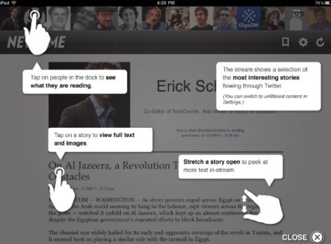 Die Vorstellung von "The Daily" liegt gerade mal ein paar Stunden hinter uns, da bahnt sich schon die nächste News-App für das iPad an. Und dahinter steckt niemand geringeres als die altehrwürdige New York Times. Der Name des Projekts lautet "News.me" und soll sich vom Ansatz her komplett von "The Daily" unterscheiden. News.me soll eine "Social News"-App werden, die hauptsächlich die Nachrichten präsentiert, die Leute, denen man bei Twitter folgt, lesen. Viel gelesene Nachrichten landen entsprechend höher im Wichtigkeitsranking der App und werden somit auch prominenter platziert. Dabei werden aber nicht nur Daten von Twitter genutzt, sondern auch vom Link-Verkürzer