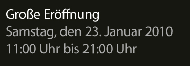 Die (deutschen) Apple-Festtage gehen weiter. Nach der vorgestrigen Ankündigung des erwarteten Special Events am 27. Januar, folgt heute die nächste "Einladung". Und zwar zur Apple Store Eröffnung in Frankfurt. Eigentlicht stand diesbezüglich bereits alles fest. Der Standort war schon lange kein Geheimnis mehr auch der Eröffnungstermin wurde bereits bekannt gegeben. Der nach München und Hamburg dritte deutsche Apple Store sollte ursprünglich am Samstag, 05. Dezember 2009 um 10.00 Uhr erstmals seine Türen öffnen. Dorch dazu kam es bekanntermaßen nicht, da Apple die Eröffnung nur zwei Tage nach der Bekanntmachung bereits wieder absagte. Die Gründe liegen nach wie vor im Dunkeln. Nun soll es aber endlich soweit sein. Gut einen Monat später, nämlich jetzt am kommenden Samstag, den 23. Januar wird um 11:00 Uhr die große Neueröffnung gefeiert. Zur Eröffnung der Stores in München und Hamburg erhielten die ersten Besucher jeweils ein kostenloses Eröffnungs-T-Shirt. Diese Tradition wird Apple wohl auch in Frankfurt weiter pflegen. Als nächste Standorte für einen Apple Store sind dann in diesem Jahr Berlin, Stuttgart, Düsseldorf und Köln im Gespräch. Auch ein weiterer Flagship-Store in Hamburg soll aktuellen Gerüchten zufolge noch in diesem Jahr eröffnen. Ich werde am Samstag vor Ort sein und natürlich in Wort und Bild von der Eröffnung berichten.