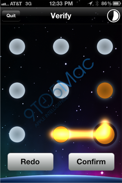 Sicher, das iPhone ist das Maß aller Dinge wenn man von Smartphones spricht und wird an allen Ecken und Enden kopiert. Warum aber nicht auch mal bei der Konkurrenz schauen, was es dort für erfolgreiche Konzepte gibt. Auf Android-Geräten beispielsweise kommt für die Gerätesperre eine gestenbasierte Matrix an Stelle der vom iPhone gewohnten Zahlenkombination zum Einsatz. Bestehend aus neun Punkten, muss dabei mit dem Finger ein bestimmter Weg abgefahren werden, um das Gerät zu entsperren. Die Kollegen von 9to5Mac haben nun in Erfahrung gebracht das Apple einen solchen "Touch-Lock" bereits in die firmeninterne "Apple Connect"-App integriert habe. Zwar gibt es derzeit keinerlei Hinweise darauf, dass ein solches Feature in Zukunft auch Bestandteil von iOS werden könnte. Die Möglichkeit bestünde als Alternative zur bisherigen Code-Sperre aber in jedem Fall.