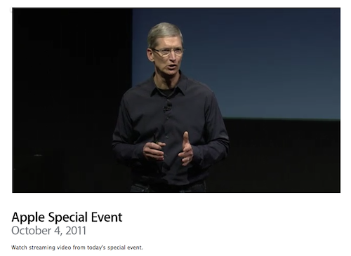 Apples "Let’s Talk iPhone."-Event ist bereits Geschichte und man kann mit den Neuvorstellungen aus meiner Sicht durchaus zufrieden sein. Dabei haben sich viele der im Vorfeld gehandelten Gerüchte bewahrheitet und Apple hat neben dem neuen iPhone 4S auch das nächste iOS-Update auf Version 5 und den Start von iCloud angekündigt. Inzwischen ist es auch möglich, sich die Veranstaltung und damit auch die Vorstellung der neuen Produkte in bewegten Bildern anzuschauen. Hierfür steht auf den Apple-Servern der Mitschnitt der Keynote als QuickTime-Stream bereit. Ein Klick auf das Bild unten führt direkt zum Keynote-Stream. In Kürze dürfte der Mitschnitt zudem auch als Podcast über iTunes bereit stehen. (danke an alle Tippgeber!)