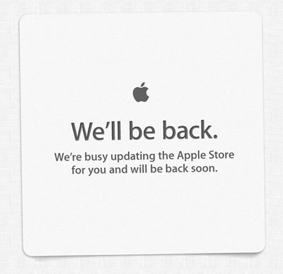 Normalerweise verzichte ich inzwischen darauf, jedes Mal zu berichten, wenn der Apple Store in den Offlinemodus geht und nichts weiter zu erwarten ist, als Wartungsarbeiten oder das Einpflegen von Promotion-Material. Am heutigen Morgen jedoch wird die Auszeit von einer kleinen Begleiterscheinung geprägt, die zumindest eine kurze Erwähnung wert sein soll. So hat sich Apple inzwischen offenbar von dem bekannten gelben Post-It verabschiedet, der das "We'll be back soon" präsentierte. Stattdessen wird man nun von einer deutlich moderneren Grafik auf dem inzwischen in verschiedenen Bereichen eingeführten Gewebe-Hintergrund begrüßt. Während dieser Schritt irgendwann kommen musste, muss ich doch gestehen, dass ich mich irgendwie an den gelben Klebezettel gewöhnt hatte. Aber gut, Zeiten ändern sich.