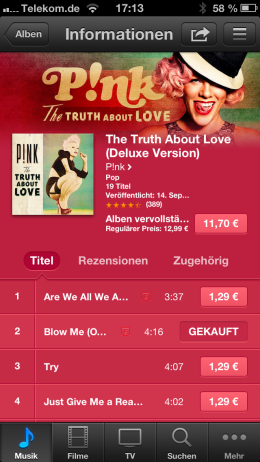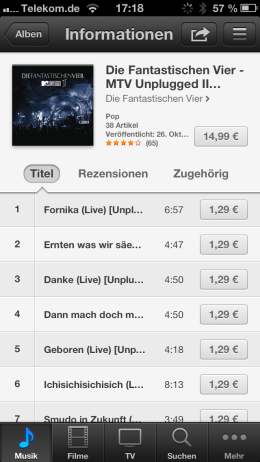 Heute oder morgen (und damit gerade noch rechtzeitig im selbst gesteckten Oktober-Zeitfenster) dürfte die neue, komplett überarbeitete iTunes-Version im Update-Bereich des Mac AppStore aufschlagen. In Vorbereitung darauf hat Apple nun offenbar im Hintergrund damit begonnen, auch die mobilen Stores an das neue Design der Alben-Ansicht anzupassen. Dabei setzt Apple künftig auf ein durchgehendes Layout, bei dem sich die Farbgestaltung an der Cover-Grafik des jeweiligen Albums orientiert. In iTunes am Mac wird sich dies auch bis in die lokale Mediathek durchziehen, die zu diesem Zweck auf Informationen aus dem iTunes-Katalog zurückgreift. Aktuell tauchen bereits die ersten entsprechend angepassten Alben-Seiten im mobilen iTunes Store auf. Unten sieht man links das neue Design, rechts die alte Alben-Ansicht. Nach und nach dürfte Apple in den kommenden Stunden alle Seiten entsprechend anpassen und dann auch in Kürze das neue iTunes (vermutlich in Version 11) zum Doenload bereitstellen. (mit Dank an alle Tippgeber!)