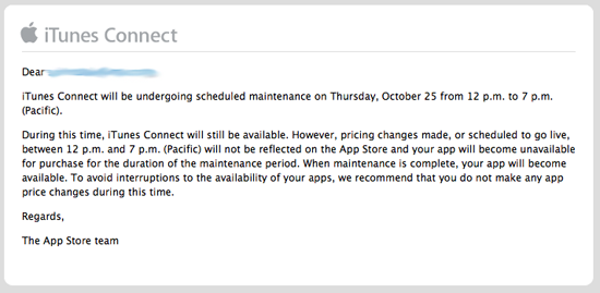 Aktuell tut sich was im AppStore. Wie es aussieht, zieht Apple in Europa nicht nur die Preise für Hardware an, sondern auch die für Apps im AppStore. So werden dort bereits die ersten Apps zum Preis von € 0,89 gelistet (siehe oberen Screenshot). Bislang lag die untere Grenze für App-Preise bei € 0,79. Neu sind teilweise auch die anderen Preisstufen. So erhöhen sich Apps, die vormals € 2,39 kosteten nun offenbar auf € 2,69, Apps die ehemals mit € 7,99 ausgezeichnet waren auf € 8,99. Die Zusammenhänge sind noch unklar. Allerdings hatte Apple gegenüber Entwicklern gestern angekündigt, dass es im Hintergrund Änderungen an iTunes connect geben wird, die die Bepreisung von Apps betreffen (siehe Screenshot ganz unten). Aktuell lässt sich demzufolge auch der entsprechende Bereich in iTunes connect nicht erreichen. Insofern scheinen die Änderungen in der Tat geplant zu sein. Im US-amerikanischen AppStore lassen sich derlei Änderungen momentan nicht blicken, es ist also möglich, dass sie lediglich die europäischen Stores betreffen. Übrigens ist die Erhöhung nicht nur im iOS AppStore zu sehen, sondern analog dazu auch im Mac AppStore (siehe Screenshot in der Mitte).