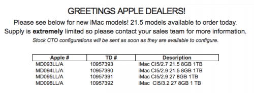 Als Apple seine neuen iMacs auf dem Event im Oktober vorstellte, gab man lediglich an, dass das 21,5"-Modell im November, die 27"-Variante im Dezember verfügbar sein würde. Auf ein genaus Datum legte man sich dabei nicht fest. Während aufgekommene Gerüchte um eine Verzögerung bis ins nächste Jahr inzwischen wieder aus der Welt gewischt wurden, könnte der neue iMac (zumindest in der kleineren Variante) eventuell bereits heute in den Verkauf gehen. So tauchte inzwischen die unten zu sehende, angebliche E-Mail eines Distributors an seine Reseller auf, die den heutigen Tag als Verkaufsstart ausgibt. (via MacRumors) Auch sonst würde der Termin Sinn machen. Zwar hat sich Apple in den vergangenen Monaten nicht mehr ganz so strikt an den Dienstag für eine Aufnahme neuer Produkte in den Apple Store gehalten. Aus der Historie heraus macht der letzte Dienstag des angekündigten Monats aber durchaus Sinn. Ich melde mich selbstverständlich wie gewohnt, sobald die Geräte (ob heute order irgendwann) im Apple Store bestellt werden können. Ach ja, a propos Ende November... Wir warten auch noch auf iTunes 11, welches uns ebenfalls in dieser Woche ins Haus stehen dürfte.
