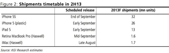 Auch in Sachen iPad lässt uns der Analyst an seinen Informationen teilhaben. Ihm zufolge soll das 9,7" iPad im neuen Look des iPad mini das einzige iPad, das in diesem Jahr vorgestellt werden soll. Das iPad mini mit Retina Display soll dann im Frühjahr 2014 erscheinen. Demnach wäre auch kein Spec-Update für das Gerät im Herbst zu erwarten. Der Grund für das Hinauszögern der Retina-Version soll der dadurch erhöhte Energiebedarf sein, den Apple noch nicht komplett in den Griff bekommen hat.
