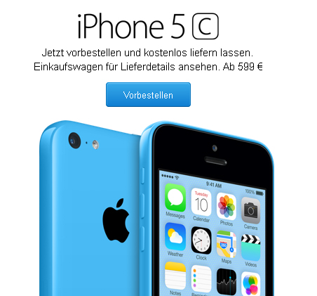 über die Hotline versuchen. Die Telekom bietet das iPhone 5c in diesem Jahr ohne SIM- und Net-Lock an. Es darf davon ausgegangen werden, dass auch die anderen Provider in Kürze mit der Entgegennahme der Vorbestellungen beginnen werden. Apple selbst wird das Gerät ab 09:00 Uhr unserer Zeit im Apple Store (derzeit offline) zur Vorbestellung auch ohne Vertrag anbieten. Der folgende Link führt direkt zur Bestellseite bei der Telekom: