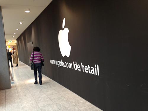Dass der zweite Münchner Apple Store ins Olympia-Einkaufszentrum (OEZ) ziehen wird, steht schon seit längerer Zeit fest. Einzig die offizielle Bestätigung seitens Apple fehlte noch. Diese ist nun erfolgt. Die bislang lediglich mit schwarzer Folie verklebte Front der mutmaßlichen Location wurde inzwischen mit dem obligatorischen Apple-Logo und dem Schriftzug apple.com/de/retail beschriftet. Dies ist in der Regel ein eindeutiger Indikator dafür, dass der Store kurz vor der Eröffnung steht. Mit ein bisschen Glück könnte es sogar noch etwas mit dem kommenden Freitag werden, also passend zum Verkaufsstart der neuen iPhones. Der Store im OEZ dürfte dann der insgesamt 12. Apple Retail Store in Deutschland werden. Weiter im Bau befinden sich zudem noch die Ladengeschäfte in Hannover und Düsseldorf. Für letzteren ist eine Eröffnung am 17. Oktober, passend zur Eröffnung des neuen Kö-Bogens wahrscheinlich. Für Hannover lässt sich hingegen noch kein Termin abschätzen. (Story und Bild via iFun)