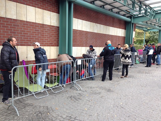 Heute Nacht ab 01:01 Uhr werden sich sowohl das iPhone 5c als auch das iPhone 5s im Apple Online Store bestellen lassen. Während das iPhone 5c bereits seit einer Woche vorbestellt werden kann, verzichtete Apple (wohl aufgrund von Lieferengpässen) auf eine Vorbestellphase beim iPhone 5s. Dementsprechend groß dürfte der Andrang auf die Apple-Server heute Nacht werden. Während in Asien inzwischen die Apple Stores in Vorbereitung auf die Bestellmöglichkeit vom Netz genommen wurden, haben sich auch in Deutschland inzwischen die ersten Wartenden vor den Apple Retail Stores eingefunden, um morgen ab 08:00 Uhr dort ganz sicher eines der neuen iPhones ergattern zu können. Ich drücke allen Wartenden die Daumen, dass das Wetter heute Nacht hält! (mit Dank für die Fotos an Andreas, Gerrit und Andreas!)