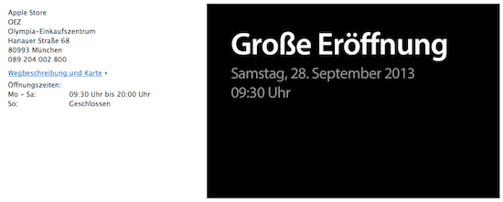 Angedeutet hatte es sich schon länger, nun ist es offiziell. Der zwölfte deutsche Apple Store wird am kommenden Samstag, den 28. September um 09:30 Uhr erstmals seine Tore im Olympiaeinkaufszentrum (OEZ) in München öffnen . Dies gab Apple offiziell in der vergangenen Nacht durch einen entsprechenden Eintrag auf den Retail-Seiten und über die "Hot News" bekannt. Wie bei solchen Eröffnungen inzwischen Tradition, erhalten die ersten 1.000 Besucher ein T-Shirt mit Apple-Logo und der Aufschrift des Standorts des neuen Stores als Erinnerungsgeschenk. Als weiterer kommender Standort wird für dieses Jahr noch die Eröffnung im Düsseldorfer Kö-Bogen, vermutlich am 17. Oktober erwartet. In Hannover dürften die Bauarbeiten hingegen wohl noch etwas mehr Zeit in Anspruch nehmen.