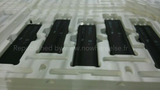 Kaum hatte das oben zu sehende Bild seinen Siegeszug durch die einschlägigen Apple-Gerüchte- und News-Seiten angetreten, waren es wieder mal die französischen Kollegen von Nowhereelse, die ihrerseits mit einem Foto nachlegten, auf dem eine Pallette Akkus für die kommende iPhone-Generation zu sehen sein soll. Verglichen mit den Akkus der aktuellen iPhones wurde ein metallischer Bereich an die Seite des Bauteils verlagert, was darauf hindeuten könnte, dass sich an der Verbauung und damit auch am Formfaktor des Geräts etwas ändern könnte. Vorausgesetzt natürlich, die Bilder sind authentisch. Ich bin schon gespannt, welche Fotos morgen in Umlauf gebracht werden.