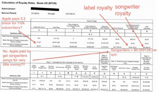 Unterdessen tauchen immer mehr interessante Details rund um die gemunkelte Übernahme von Beats Electronics durch Apple auf. So veröffentlichte ein Musik-Blog einen angeblichen Bericht, auf dem die Abgaben des zugehörigen Musik-Streamingdienstes Beats Music an die Rechteinhaber zu sehen sein sollen. Hieraus würde sich ergeben, dass Beats Music Ende März gerade einmal 110.992 Nutzer zählte, wobei unklar ist, wieviele davon tatsächlich zahlende Nutzer sind. Diese Zahlen dürften Apple also eher nicht zu der geplanten Übernahme verleitet haben. Umso mehr scheint Cupertino ein Auge auf die zugrundeliegende Technologie, die Kontakte in die Musikszene und das erforlgreiche Marketing-Team von Beats geworfen zu haben. Und vor dem Hintergrund, dass angeblich alleine das Kopfhörer-Geschäft einen Gewinn von 1 Milliarde US$ pro Jahr abwirft, erscheint auch der kolportierte Kaufpreis von 3,2 Milliarden US$ schon wieder ein wenig plausibler. (via 9to5Mac)