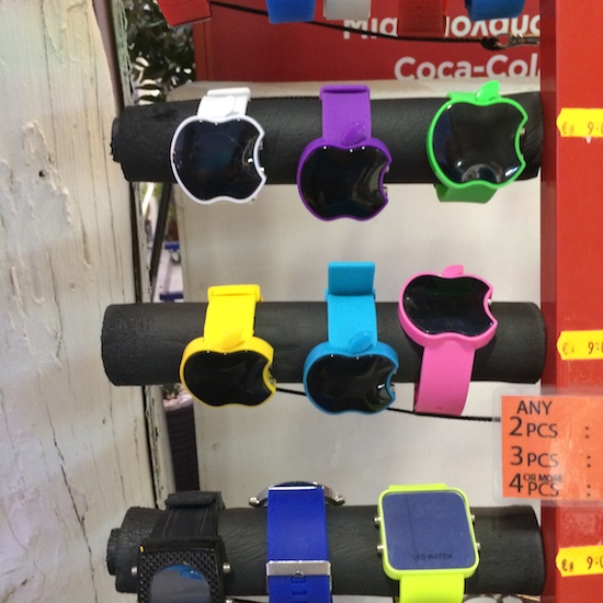 Es klalng bereits mehrfach an: Die Leaks und Informationen zur für morgen erwarteten iWatch sind extrem rar gesät. Nur in Griechenland sind nun offenbar die ersten Geräte bereits aus den Markt gespült worden, wie mir mein Leser Mario (danke dafür!) frisch aus dem Urlaub berichtet. Allerdings gibt es anscheinend doch nur eine Größe und statt der bislang vier erwarteten Farben doch offenbar satte sechs! Apple wird sicherlich nicht erfreut sein über einen solch kapitalen Leak kurz vor dem Event. Zumindest dann, wenn er sich morgen Abend als echt herausstellen sollte... In diesem Sinne allen eine gute Pre-Event-Nacht!