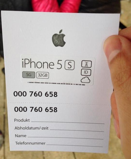 Wer sich schon einmal zu einem iPhone-Verkaufsstart in eine Warteschlange vor einem Apple Store gestellt hat, kennt dieses Spiel. Kurz vor der Öffnung der Eingangstüren gehen Apple-Mitarbeiter die Schlange ab, fragen nach dem gewünschten Gerät und dücken einem ein Pappkärtchen mit der entsprechenden Wahl in die Hand. Ein Beispiel hierfür von meinem iPhone-Kauf im vergangenen Jahr. sieht man unten. Hiermit hat man zumindest einigermaßen Gewissheit, dass man dieses Gerät dann auch bekommt, wenn man endlich an der Reihe ist. Innerhalb des Stores beschleunigt dieser Prozess zudem die Bedienung des Kunden. In diesem Jahr könnte das Spiel nun jedoch anders laufen, wie die Kollegen von 9to5Mac berichten. Aus internen Schulungsunterlagen soll hervorgehen, dass Apple sich beim Verkaufsstart des iPhone 6 und iPhone 6 Plus von den alten Pappkärtchen verabschiedet und stattdessen auf eine virtuelle Warteschlange namens "Reservation Pass" setzt.