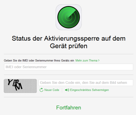 nicht sogar unmöglich gemacht. Allerdings wird damit auch der reguläre Wiederverkauf ein wenig schwiergier gemacht. Um dies ein wenig zu lindern, hat Apple über iCloud.com nun ein Activation Lock Status Tool (via MacRumors) bereitgestellt, über das man prüfen kann, ob auf einem iOS-Gerät die Aktivierungssperre aktiv ist oder nicht. Benötigt wird hierzu lediglich die IMEI oder Seriennummer des Geräts. Sollte die Aktivierungssperre aktiv sein, zeigt das Tool eine deutliche Warnung an, wonach die Apple ID und das Passwort des aktuellen Besitzers benötigt werden, bevor ein neuer Besitzer das Gerät in Betrieb nehmen kann. Erwirbt man ein iOS-Gerät künftig also über eBay oder einen anderen Weg, sollte man sich zunächst die IMEI- oder Seriennummer geben lassen, um das Gerät auf die Aktivierungssperre hin zu prüfen. Sollte diese nach wie vor aktiv sein, sollte man von einem Kauf Abstand nehmen, bis der aktuelle Besitzer die Sperre entfernt hat.