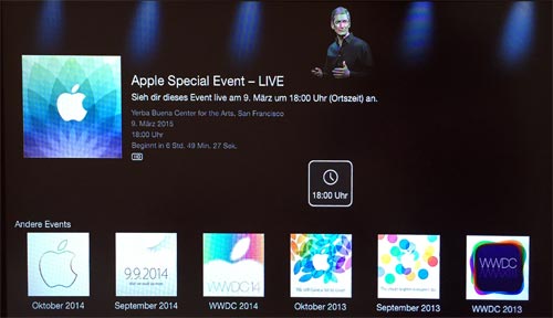 Nicht nur der Offline-Modus des Apple Store gehört heutzutage zu den klassischen Vorbereitungsmaßnahmen bei einem Apple Event, auch der Event-Kanal auf dem Apple TV ist inzwischen schon obligatorisch geworden. Bereits in der vergangenen Woche auf der Event-Webseite angekündigt, ist heute Mittag nun der Livestream-Kanal auf dem Apple TV angekommen (via iFun). Der Stream wird darüber hinaus auch über die Apple Event-Webseiten am Rechner oder wahlweise über Safari am iPhone und iPad verfügbar sein wird. Als Systemvoraussetzungen gibt Apple weiterhin an: "Mindestens Safari 5.1.10 unter OS X 10.6.8 oder neuer, Safari unter iOS 6.0 oder neuer oder ein Apple TV der zweiten oder dritten Generation mit Softwareversion 6.2 oder neuer." Für all diejenigen, die die Keynote nicht in Bild und Ton mitverfolgen können, veröffentliche ich später selbstverständlich auch noch die Links zu verschiedenen Live-Tickern und gebe eine kurze Anleitung, wie man auch meinen Twitter-Ticker mitverfolgen kann.
