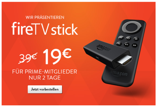 Das Geheimnis, das eigentlich keines war, ist nun endgültig gelüftet. In den vergangenen Tagen prangte auf der Startseite von Amazon ein Banner mit einer Portion Popcorn und einer Ankündigung eines Angebots für den heutigen Tag um 09:00 Uhr. Seit diesem Zeitpunkt ist der seit einiger Zeit bereits in den USA verfügbare Fire TV Stick nun auch hierzulande vorbestellbar. Offiziell in den Verkauf geht das gute Stück dann am 15. April. Vergleichbar mit dem Chromecast Stick von Google und als kleiner Bruder der Set-Top Box Fire TV vermarket, wirft Amazon mit dem Fire TV Stick einen weiteren Konkurrenten für das Apple TV auf den Markt. Er wird einfach in einen freien HDMI-Anschluss am hauseigenen Fernseher gesteckt und ermöglicht anschließend sowohl den Zugriff auf das Musik, TV-Serien und Filme umfassende Streaming-Angebot von Amazon, als auch diverse Apps und Spiele. Für die Steuerung findet man eine kleine Fernbedienung beigelegt. Der Amazon Fire TV Stick kann ab sofort zum Preis von € 39,- über den folgenden Link bestellt werden (Prime-Mitglieder zahlen heute und morgen lediglich € 19,-): Amazon Fire TV Stick
