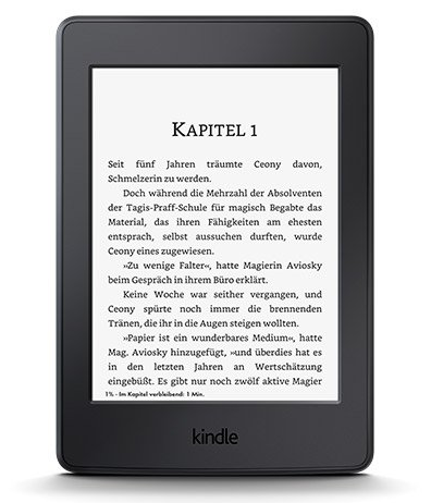 Im Jahr 2012 hat Amazon die erste Generation des Kindle Paperwhite vorgestellt, der sich vor allem dadurch auszeichnet, dass man auf seinem speziellen Display lesen können soll, wie auf echtem Papier. Da das Display zudem beim Lesen keinen Strom verbraucht, hält der integrierte Akku mehrere Wochen durch. Nun hat Amazon die inzwischen dritte Generation des Kindle Paperwhite vorgestellt, die die Pixeldichte gegenüber dem Vorgängermodell von 212 ppi auf 300 ppi anhebt und damit für eine noch bessere Textdarstellung sorgt. Hierzu trägt auch die neue, bereits aus der Kindle-App (kostenlos im AppStore) verwendete Schriftart Bookerly bei. Dank eines verstellbaren Frontlichts kann sowohl bei Tag, als auch bei Nacht optimal gelesen werden.