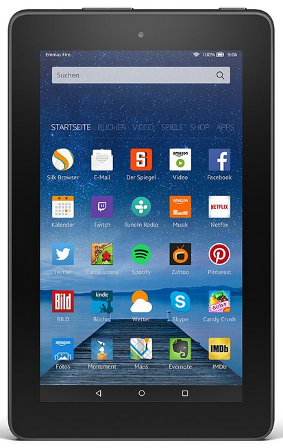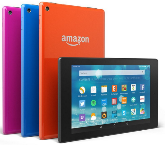 Neben dem neu vorgstellten Fire TV mit 4K Ultra HD und dem Fire TV Stick mit Sprachfernbedienung hat Amazon am heutigen Tage im Vorbegiehen auch noch vier neue Modelle seiner Fire Tablets präsentiert. Das "normale" Fire bewirbt Amazon dabei als den "neuen Standard für günstige Tablets". Ausgestattet ist es mit einem 7"-IPS-Display (171 pp bei /1.024 x 600 Pixeln), einem schnellen Quad-Core-Prozessor mit 1,3 GHz, 1 GB Arbeitsspeicher, sowie Kameras auf der Vorder- und Rückseite. Der Akku soll bei normaler Nutzung sieben Stunden durchhalten. Die verbauten 8 GB Speicherplatz lassen sich auf Wunsch per microSD-Karte mit bis zu 128 GB zusätzlichem Speicherplatz erweitern. Mit dem Kauf des Fire erhält man Zugriff auf "Amazon Underground", einen neuen App-Shop, wo Apps, Spiele und sogar In-App-Artikel im Wert von mehreren tausend Euro gratis sind, sowie kostenlosen, uneingeschränkten Speicherplatz in der Cloud für alle Amazon-Inhalte und Fotos, die mit einem Fire-Gerät aufgenommen wurde. Das neue Fire wird ab dem 30. September ausgeliefert, kann aber bereits zu einem Preis ab € 59,99 über den folgenden Link bei Amazon vorbestellt werden: Fire