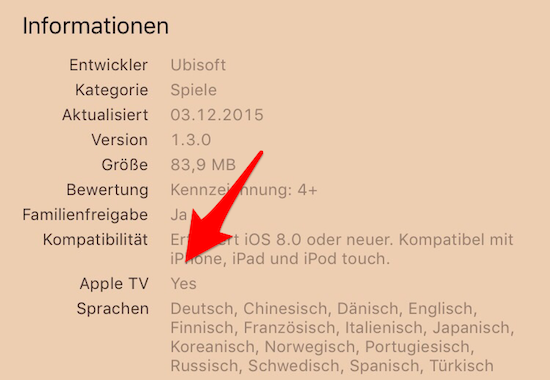 Den eher schleppenden Anlauf des AppStore auf dem neuen Apple TV hatte ich bereits thematisiert. Während die Gründe hierfür vielschichtig sein können, bessert Apple nun immerhin an einer Stelle nach. Zu den Hinweisen, mit welcher iOS-Version eine App kompatibel ist, ob sie eine Erweiterung für die Apple Watch enthält und ob sie eine angepasste Benutzeroberfläche, sowohl für das iPad, als auch das iPhone hat, gesellt sich nun auch eine Markierung, wenn die App auch auf dem neuen Apple TV verfügbar ist. So zu sehen unter anderem bei Rayman Adventures (kostenlos im AppStore), von dem auch der unten zu sehende Screenshot stammt. Damit verbessert Apple die Übersichtlichkeit und die Auffindbarkeit der mit dem neuen Apple TV kompatiblen Apps und hilft unter Umständen interessierten Nutzern dabei, sich schon vor dem Kauf der Set-Top Box einen Überblick über die verfügbaren Apps zu verschaffen.