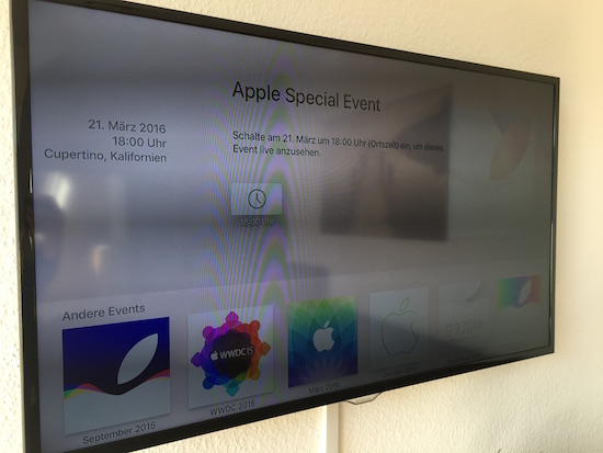 Wie auch immer das Gerät am Ende heißen wird, die Vorstellung wird man sich erneut live und in Farbe per Livestream des Events anschauen können. Apple hat hierzu bereits den entsprechenden Kanal auf dem Apple TV freigeschaltet. Anders als auf den älteren Generationen, auf denen der Kanal automatisch erscheint, muss man auf dem neuen Apple TV eine entsprechende App aus dem tvOS AppStore laden. Hierzu gibt man in der Suche einfach den Begriff "Apple Events" ein und lädt sich die App kostenlos herunter.