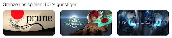 Gestern hatte ich bereits anlässlich des AppStore-lastigen Freitags auf eine Auswahl von Apps zum Thema Wandern und Campen hingwiesen. Wer sein iPhone oder iPad hingegen lieber zum Spielen nutzt, findet derzeit eine Rabatt-Aktion von Apple im AppStore, bei der diverse, teils hochkarätige Titel um teilweise über 50% reduziert zu haben sind. Unter dem Motto "Grenzenlos spielen" findet man hier neun sehr gute Spiele zum vergünstigten Preis, die zum Teil auch bereits in meinen AppStore Perlen vertreten waren. Wer also noch ein wenig Unterhaltung für das Wochenende (und natürlich darüber hinaus) sucht, wird eventuell in der folgenden Liste fündig: