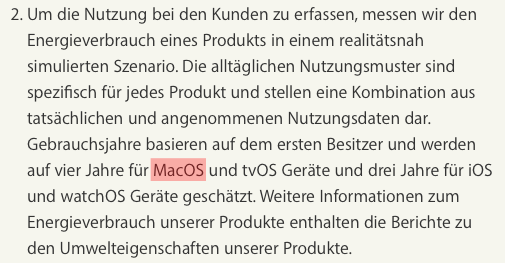 Jahre für MacOS und tvOS Geräte und drei Jahre für iOS und watchOS