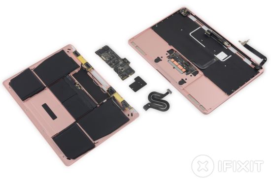 In der vergangenen Woche hat Apple eine neue Generation seines 12" MacBook auf den Markt gebracht, welches sich inzwischen auch im Apple Online Store, sowie den Ladengeschäften erwerben lässt. Ein Umstand, der natürlich auch wieder die Reparaturspezialisten von iFixit auf den Plan gerufen hat, die das neue Gerät wie gewohnt feinsäuberlich in seine Einzelteile zerlegt haben und nun ihre Ergebnisse und Entdeckungen präsentieren. Da sich die Veränderungen bei dem neuen Modell ja hauptsächlich auf interne Verbesserungen und eine neue Gehäusefarbe beschränken, sind die Neuerungen gegenüber dem Vorgängermodell überschaubar. Ebenso wie beim Vorgänger verwendet Apple beim Verbauen der internen Komponenten erneut jede Menge Klebstoff und Lötzinn, was zu einer Reparaturnote bei iFixit von einem von zehn möglichen Punkten führt. So sind unter anderem der Prozessor, der Arbeits- und Flashspeicher, sowie der Akku fest verbaut und können nicht ohne weiteres ausgetauscht werden. Ein Umstand, der sicherlich auch auf die kompakte Form des MacBook zurückzuführen ist. Wirklich neu ist neben dem schnelleren Prozessor vor allem auch der Akku, der nun mit 41,41 Wattstunden daher kommt und damit um ca. 4% leistungsfähiger ist als das Beuteil im Vorgänger. Auch der neu verbaute Intel Core-M-Prozessor dürfte zur längeren Akkulaufzeit beitragen. Die komplette Galerie der Demontage inklusive der dabei gewonnenen Erkenntnisse kann wie immer bei den Kollegen von iFixit eingesehen werden.