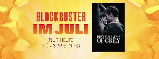 Apple versüßt allen Filmfans den diesjährigen Juli mit einer besonderen Aktion im iTunes Store. Unter dem Motto "Blockbuster im Juli" wird dabei jeden Tag ein neuer Film im iTunes Store für 24 Stunden auf lediglich noch € 3,99 im Preis gesenkt. Hierfür erhält man dann die Kaufversion des Titels in HD-Qualität. Am heutigen Tag handelt es sich dabei um die Buchverfilmung von Fifty Shades of Grey (€ 3,99 im iTunes Store). Selbst wenn man aktuell keine Zeit hat, sich den Streifen zu Gemüte zu führen, kann ein Zuschlagen bei diesem Preis nicht schaden. Da es sich um die Kaufversion handelt, kann man den Film nach dem Kauf schauen wann man will und ihn auch jederzeit aus iCloud erneut kostenlos herunterladen. Viel Spaß!