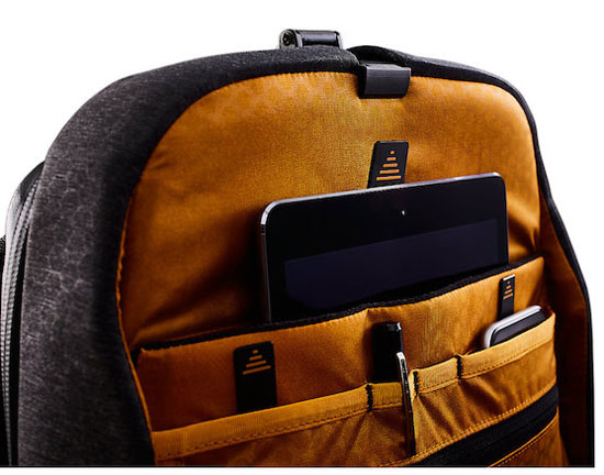 Dabei haben die TNF-Designer ganze Arbeit geleistet. So verfügt das Access Pack nicht nur über eine spezielle Tasche für das Tablet, sondern darüber hinaus auch noch über zwei weitere Taschen, in denen ein Smartphone, eine Digitalkamera, eine Powerbank oder andere kleine elektronische Geräte Platz finden. Einmal darin verstaut, sorgt ein Zug an den jederzeit zugänglichen Ejector-Tabs dafür, dass diese nach oben gezogen und somit jederzeit komfortabel entnommen werden können. Zu den Taschen für die elektronischen Geräte gesellen sich außerdem eine weitere Tasche für die Sonnenbrille, zwei versteckte externe Taschen, und zwei weitere Taschen im Inneren, die für einen jederzeit aufgeräumten Rucksack sorgen. Eine weitere externe Tasche auf der Rückseite bietet Platz für ein Notebook von bis zu 15" Größe. Dieses ist damit jederzeit schnell und einfach zu erreichen - sehr praktisch beispielsweise am Flughafen, wenn der Laptop an der Sicherheitskontrolle aus dem Rucksack entnommen werden muss.