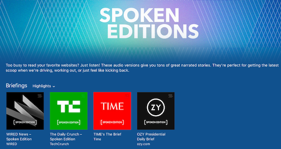 Wie bereits erwartet, bewirbt Apple die Spoken Editions vor allem als Mehrwert für Nutzer in Situationen, in denen es schwer fällt zu lesen, beispielsweise im eigenen Auto auf dem Weg zur Arbeit oder beim Workout. Die Spoken Editions basieren auf einer automatisierten Technologie von SpokenLayer, einem Unternehmen, welches den RSS-Feed von Publikationen ausliest und diesen automatisch vertont. Dank der Partnerschaft mit Apple sollen auf diese Weise pro Woche hunderte Folgen der Spoken Editions entstehen.