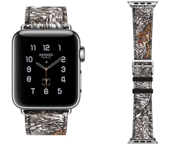 Auch wenn Apple die Apple Watch Series 2 deutlich weniger als Mode-Accessoire positioniert, als dies noch bei der ersten Generation der Smartwatch der Fall war, arbeitet man bei exklusiven Armbändern auch weiterhin mit dem französischen Modelabel Hermès zusammen. Dort wird man in seinen Ladengeschäften laut der französischen Vogue ab dem 24. November neue Armbänder unter dem Namen "Equateur Tattoo" ins Sortiment aufnehmen, die von einem von dem Künster Robert Dallet gestaltetes Dschungel-Design ziert. Für den stolzen Preis von € 419,- sollen die neuen, in der Stückzahl limitierten Single-Tour-Armbänder dann zu haben sein. Im Apple Store werden sie hingegen nicht angeboten. Das Design erinnert an ein exotisches Blatt in schwarz und weiß, welches von einem bunten Gepard ergänzt wird.