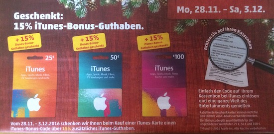 Achtung: Leider kann ich die Hinweise auf die günstigen iTunes-Karten nicht in jedem einzelnen Fall überprüfen. Checkt daher bitte vorher noch einmal ab, ob die jeweilige Filliale den Rabatt auch tatsächlich gewährt!