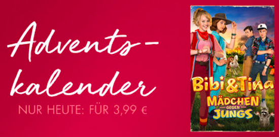 Apple versüßt allen Filmfans den diesjährigen Dezember mit einer besonderen Aktion im deutschen iTunes Store. In Form eines "Adventskalenders" wird dabei bis zum 24. Dezember jeden Tag ein neuer Film im iTunes Store für 24 Stunden auf lediglich noch € 3,99 im Preis gesenkt. Hierfür erhält man dann die Kaufversion des Titels in HD-Qualität. Am heutigen Tag der Aktion handelt es sich dabei um den Jugendfilm Bibi & Tina: Mädchen gegen Jungs (€ 3,99 im iTunes Store). Selbst wenn man aktuell keine Zeit hat, sich den Streifen zu Gemüte zu führen, kann ein Zuschlagen bei diesem Preis nicht schaden. Da es sich um die Kaufversion handelt, kann man den Film nach dem Kauf schauen wann man will und ihn auch jederzeit aus iCloud erneut kostenlos herunterladen. Viel Spaß!