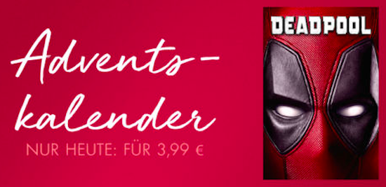 Apple versüßt allen Filmfans den diesjährigen Dezember mit einer besonderen Aktion im deutschen iTunes Store. In Form eines "Adventskalenders" wird dabei bis zum 24. Dezember jeden Tag ein neuer Film im iTunes Store für 24 Stunden auf lediglich noch € 3,99 im Preis gesenkt. Hierfür erhält man dann die Kaufversion des Titels in HD-Qualität. Am heutigen Tag der Aktion handelt es sich dabei um den Action-Kracher Deadpool (€ 3,99 im iTunes Store). Selbst wenn man aktuell keine Zeit hat, sich den Streifen zu Gemüte zu führen, kann ein Zuschlagen bei diesem Preis nicht schaden. Da es sich um die Kaufversion handelt, kann man den Film nach dem Kauf schauen wann man will und ihn auch jederzeit aus iCloud erneut kostenlos herunterladen. Viel Spaß!